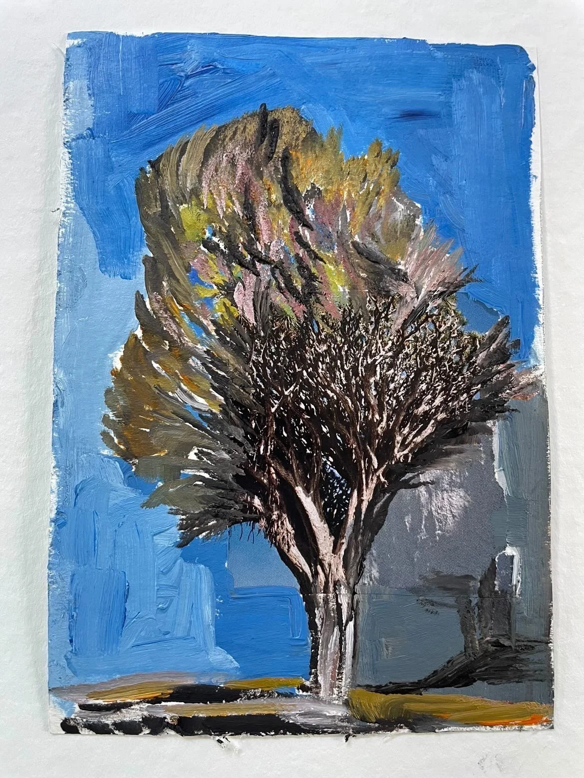 Mally Khorasantchi, Straight, 2022. Collage, oil on paper, 7 x 5 inches.