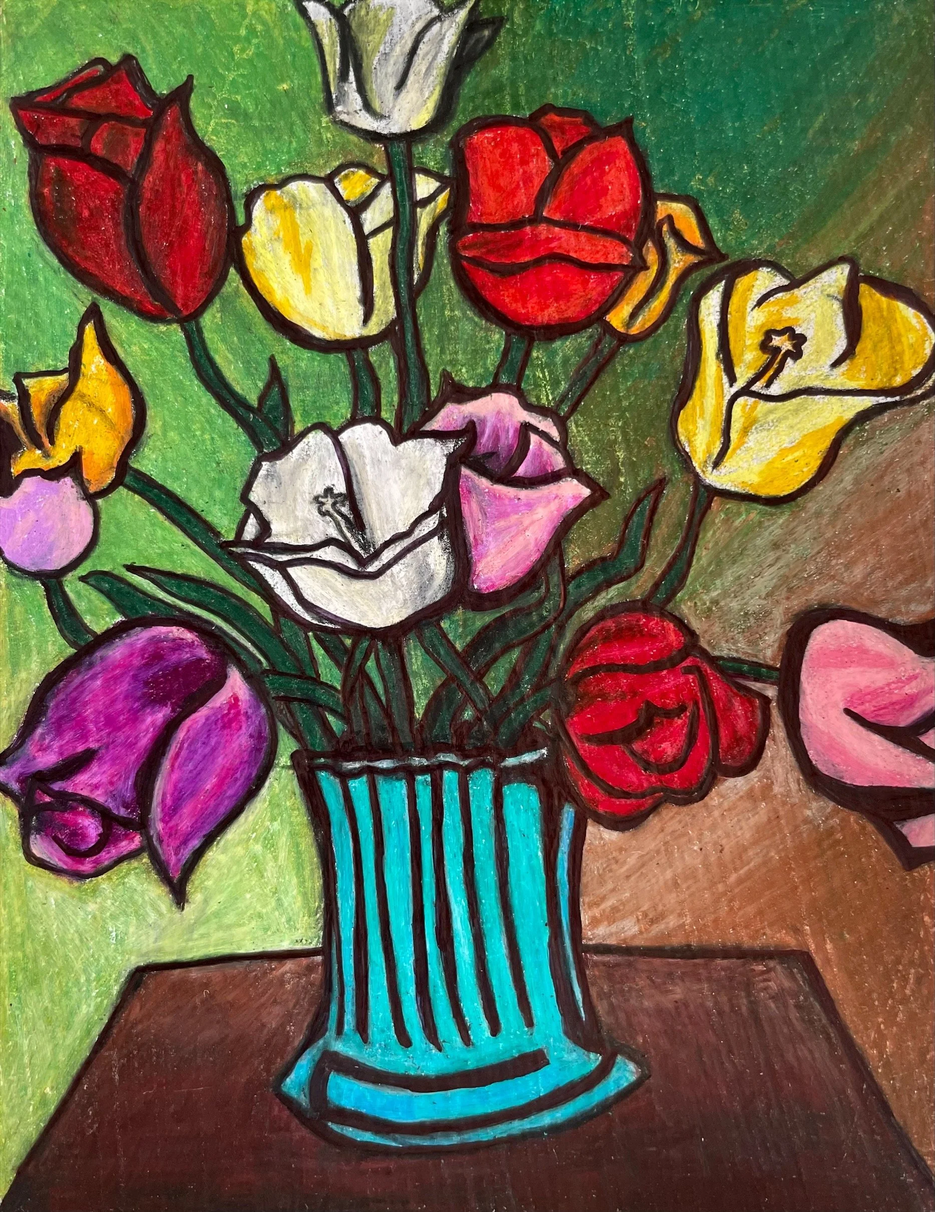 Morgan Everhart, After Lichtenstein’s Black Flowers, 2022. Colored pencil and permanent marker on paper, 5 1/2 x 4 inches.